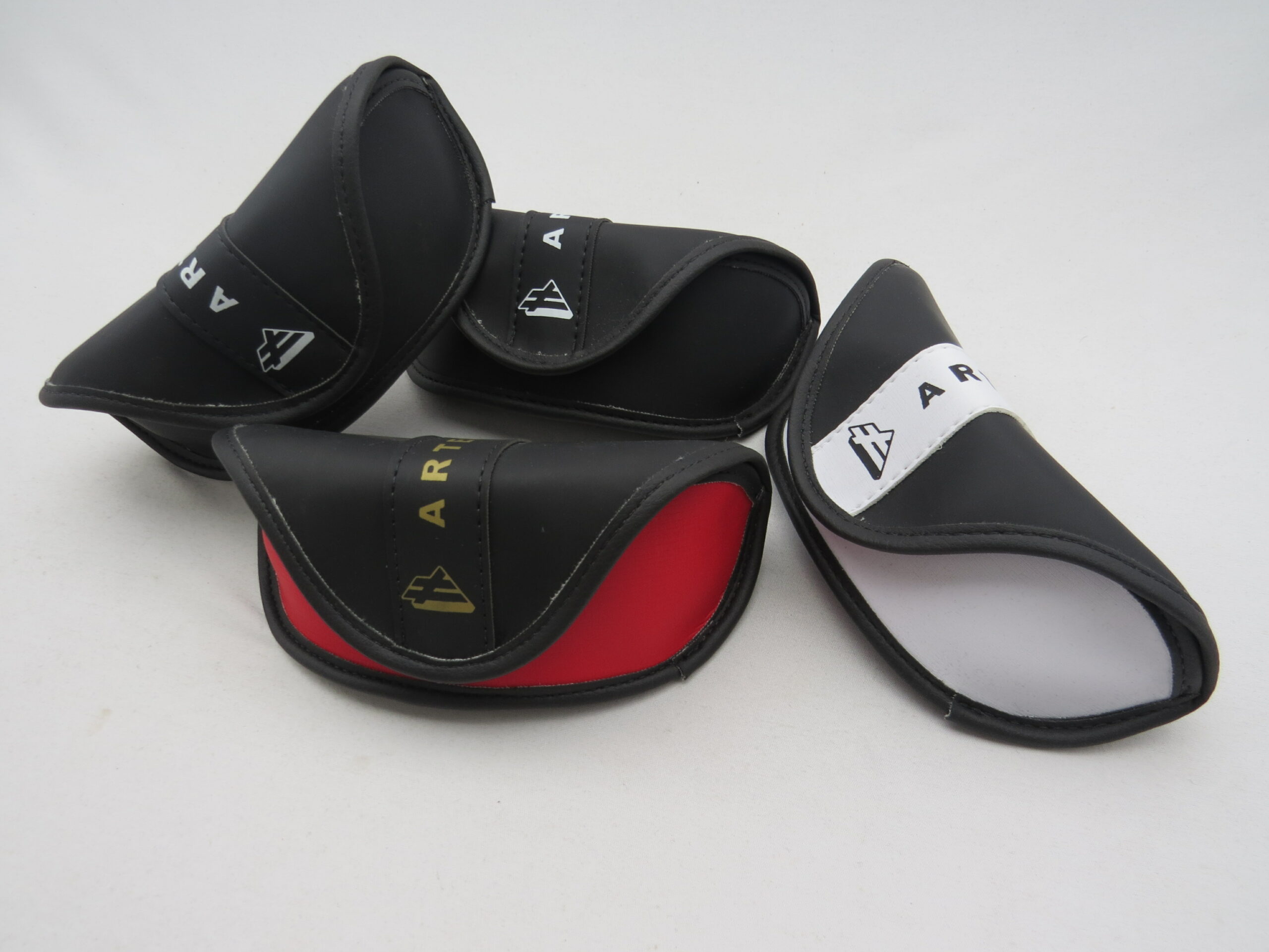 Confeccionadas em material sintético com gravação em serigrafia.