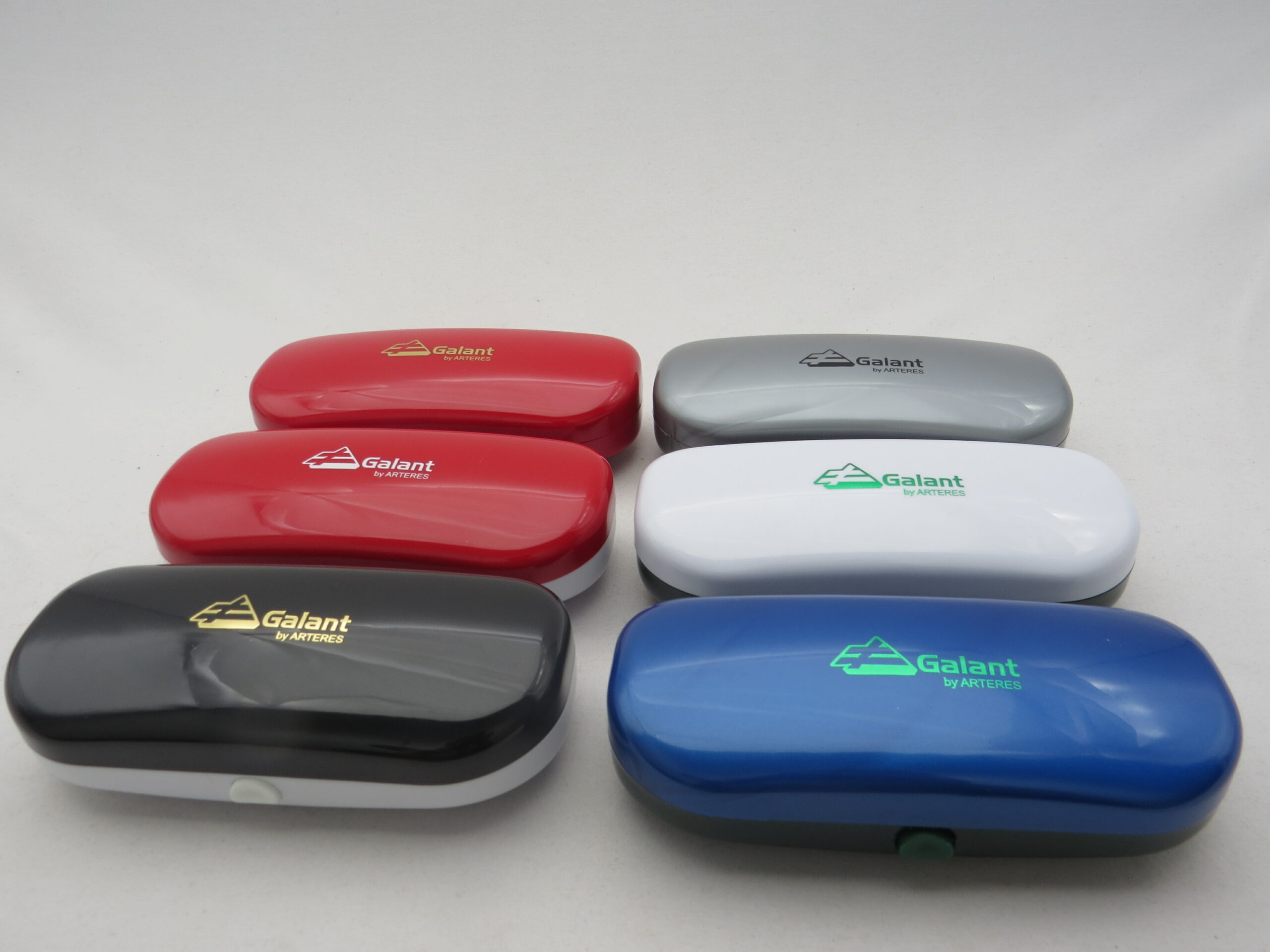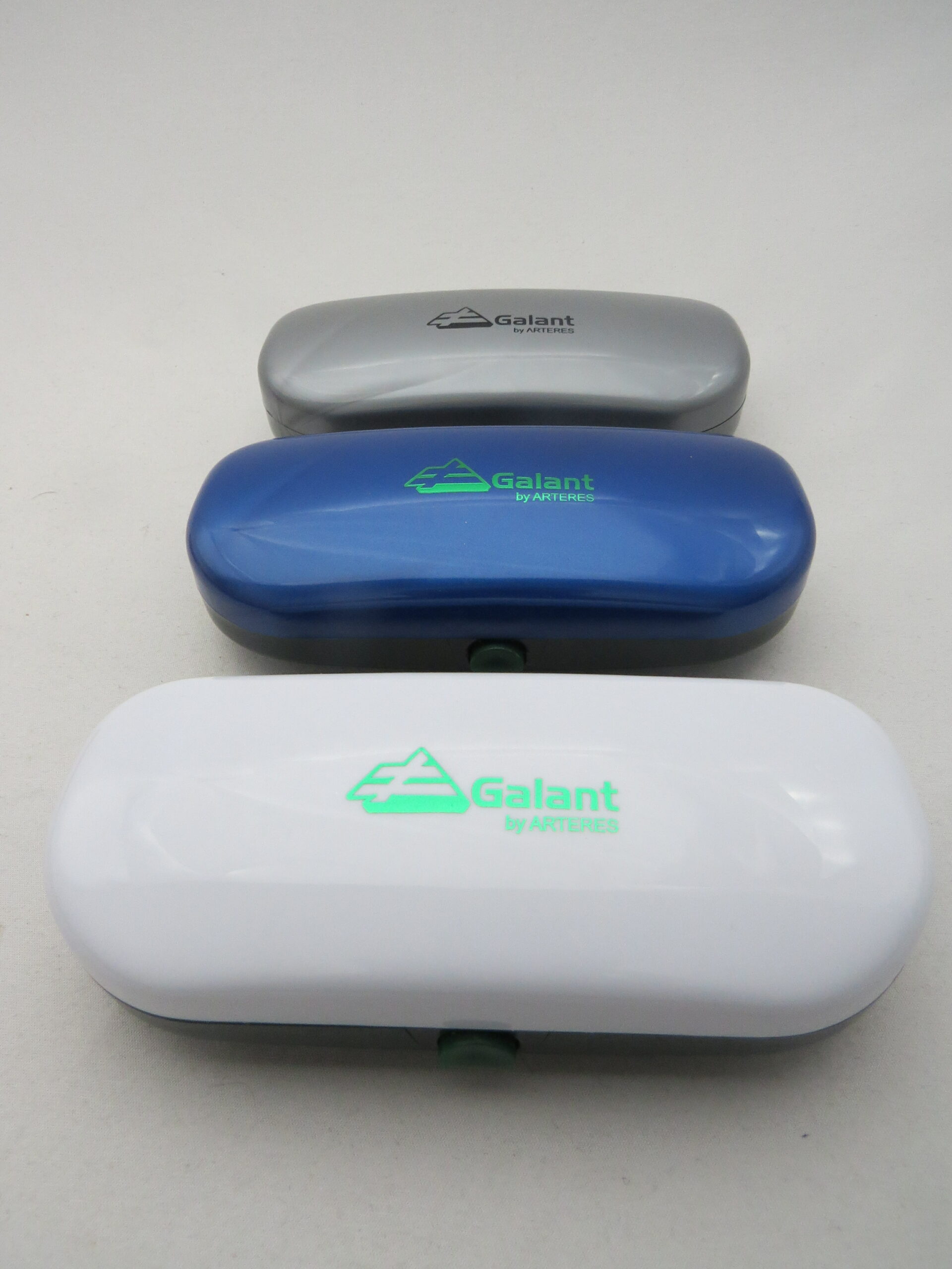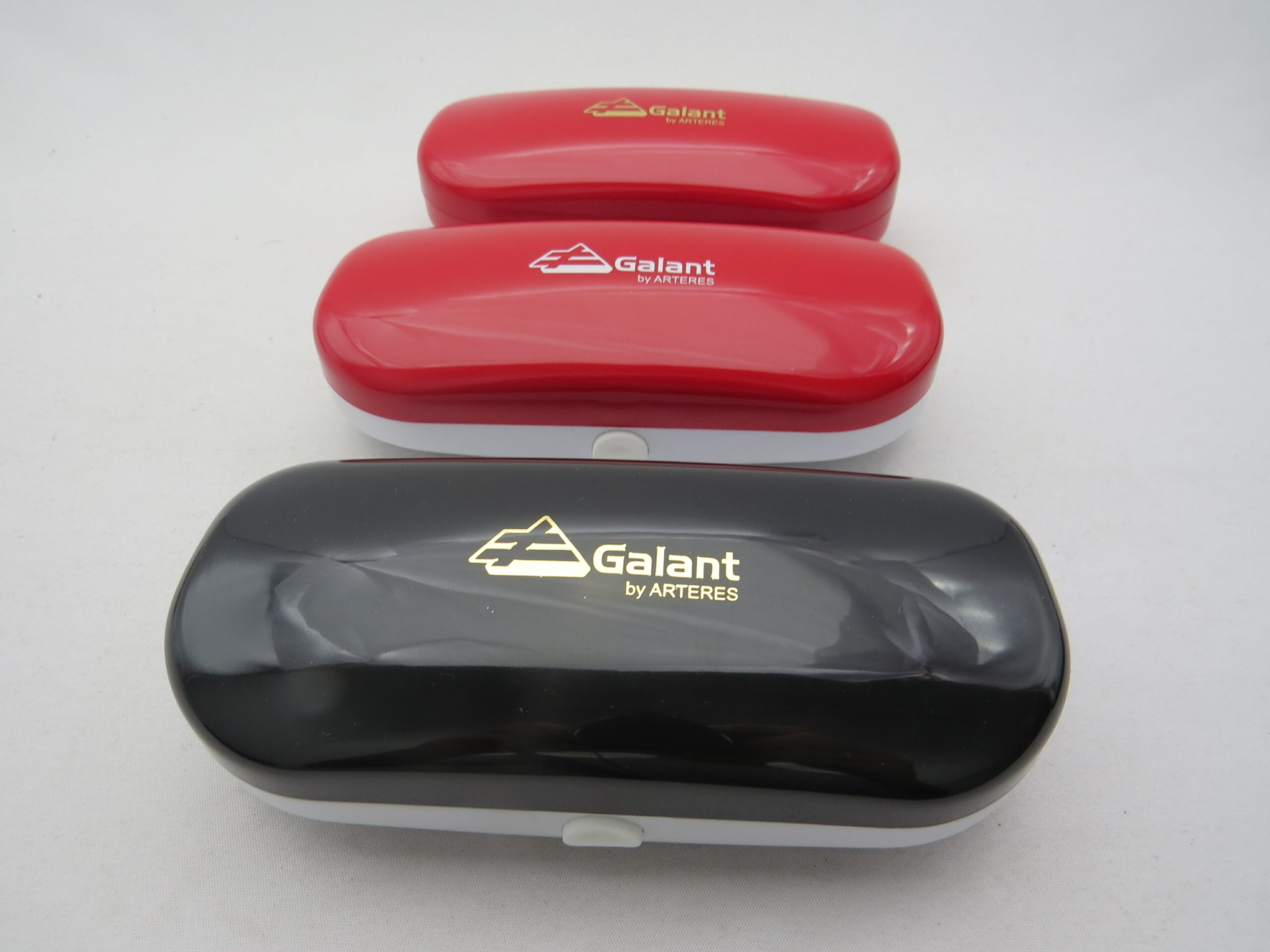Estojo de plástico rígido com gravação hot-stamping e forração vacuum forming.